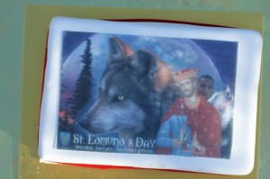 As everyone is aware St Edmund’s severed head was guarded by a mystical wolf. This was due to his power to control wolves. To celebrate the awesomeness of this fine creature you must clothe one’s self in traditional Wolf Tshirt. Worn through out the ages, there are many variations. You may choose the 3 wolves howling at the moon.